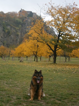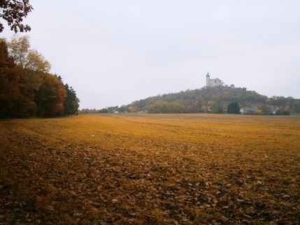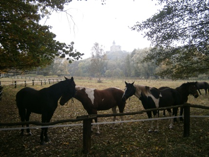 Jen jsem při focení šílela z psiska, které víc než ze zvířátek bylo naprosto v rauši z navoněné trávy kolem ohrad, ve které se s chutí válelo. Vrátili jsme se na parkoviště, dali sváču a vyhlíželi známé tváře, protože třeba obě Verči už jsem neviděla ani nepamatuju a taky Kaziho "mámu" Lenku, se kterou jsem se viděla naposledy před třemi roky. Nesešlo se nás zase tolik, kolik jsem čekala, ale nevadí, lidi i psiska pohodoví a kolem desáté jsme vyrazili ke hradu, bez listí už nezvykle odhalenému ...