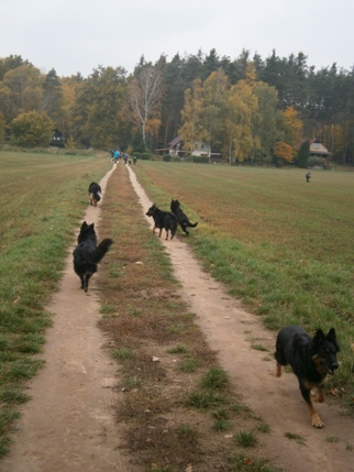 Když jsme dorazili na parkoviště, byla už většina pryč, my jsme si ale ještě v příjemné společnosti zašli na pozdní oběd. Lenka si pak ještě dosytosti užila Kazika a já jsem moc ráda, že mohla zase vidět jednoho ze svých odchovanců. Nerady jsme se rozloučily a já vyrazila s unaveným psiskem na zpáteční cestu tím ospalým podzimním pozdním odpolednem ... myslím, že si začínám rozumět s tím Hradcem směrem od Pardubic, už jsem se otáčela jen na jedné křižovatce :o