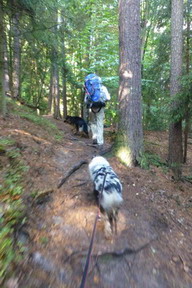 Jsme na 38-mém kilometru a čeká nás rozhodnutí, co dál. V tomto místě je totiž možné vzdát a dojít pouhých 5km zpět do kempu. Zkušení dogtrekaři radí urazit první den nejméně polovinu vzdálenosti a raději více, zkoumáme tedy mapu a zvažujeme naše možnosti. Do poloviny trati nám zbývá ujít 5 km, ve tmě s čelovkou, skalním terénem. Když nepočítám do krve rozedřená podkolení, stržené puchýře a nohy, které se pomalu přestávají vejít do bot, tak jiná zranění nemáme, vše tedy závisí jen na psychice. Pokud se rozhodnu, že vzdám - končím, pokud se rozhodnu pokračovat - půjdu dál. Pití, jídlo a teplo nás vzpamatovalo a obě máme chuť to zkusit a jít dál. Do hospody přicházejí rodinky na večeři, trochu jim závidím, dají si v teple a světle jídlo, pobaví se a pak zalezou do postele, zatímco nás čeká jen únava a noc venku.