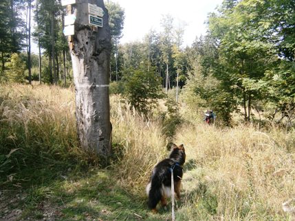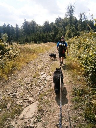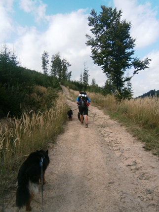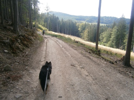 Nemáme problém nasadit trochu tempo a rázujeme po hřebenech stále nahoru a dolů, a je tu v tom teplém odpoledni krásně ... jen ty kopce dolů jsou kruté a slézám je neskutečně pomalu. Na Kazikovi už je taky znát únava i vedro a je schopný nejít v takovém tahu, pokud nám Libor nezmizí z dohledu, pak je třeba té choďácké palici připomínat povely jako "Pomalu!" ... "Kaziši!" ... nebo Liborovo "Nervi!" a to neustále :o