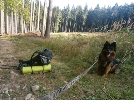 až k té poslední kontrole s nepopsatelným pocitem procvaknutí posledního políčka! K11 na 83-tém kilometru před čtvrtou hodinou odpoledne, zastavuji tu jen na dobu nezbytně nutnou k napojení psiska i sebe a pomalu zase dál ... při stoupání nevím už kolikátým z krpálů si psisko říká o pauzu, posílám tedy Libora napřed, shodím baťoh, dám chlupáčovi vodu a snažím se dostat do sebe i přes tu únavu a bolest něco z tý nádherný přírody okolo ... a jo, jde to ...
