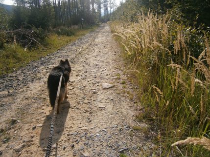 Osvěžené psisko mě dotáhne za Liborem a dopajdám se za ním na křižovatku Držovské polesí, odkud už je to jen "kousek" :o Po zpevněné cestě s citelnými kamínky stále, díkybohu zatím!, mírným klesáním se blížíme tomu cíli a já se děsím toho posledního sešupu. Foťák ještě nekleknul, mobil s posledními zbytky baterky vydržel taky až sem ... Libor nám pomalu mizí z dohledu a za mnou naštěstí nikdo nejde, protože můj styl chůze je tou bolestí ... prostě šílený :o
