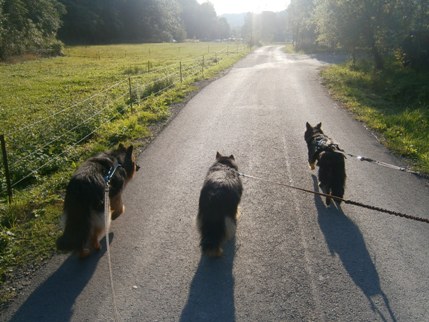 Zůstáváme sami, šakal táhne za Connie a Angie, což zrovna teď v tom závěrečném krpálu dolů nepotřebuju a slézám ho neskutečně pomalu. Libor už je určitě na cestě do cíle a já mu to jen přeju, tu chvilku slávy si zaslouží :) Pocit úlevy, když položím nohu na rovinku pod kopcem je nepopsatelný! Křižovatka a silnice na které jsme ve čtvrtek venčili psiska, teď už to do cíle znám ... a za zatáčkou ... čeká parťák! Dík, fakt jsem to nečekala! Poslední metry do cíle zhodnotíme tenhle vydařený trek a s tím, že "tuto lapálii", jak tuhle štreku opět nezapomenutelně ve čtvrtek večer nad mapou nazval Marťo :)) zvládneme v takovém čase, jsme včera vůbec nepočítali. A je tu sluncem zalitý kemp a o sobotní páté hodině odpolední cíl mého prvního a Liborova druhého "Fryštáku" ...