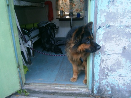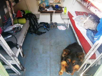 ale jakmile ho po návratu ze sprchy nakrmím, je kouzelné pozorovat, jak ho plné bříško uspává ... doplnit energii, která po dnešním výkonu a dni bez pořádného jídla citelně chybí se vydávám i já a jdu na gulášovku. Sejdeme se tu s Liborem, Věruškou a ostatními, kteří už dorazili do cíle a s večerním chladem se přesuneme do hospody, kde si dám večeři a dva Jégříky za úspěšný trek. Kolem desáté na mě přichází příjemná únava a přesouvám se za psiskem do chatičky. Zalezu si do spacáku a nechám se tou únavou přemáhat a s příjemným pocitem, že ráno nemusím brzy vstávat usínám ... dokud neudělám jakýkoli pohyb a hlavně koleno, které mě ze spánku okamžitě probudí. Budím se kolem půl sedmé a pobaveně se dívám na neuvěřitelné škvíry kolem dveří, které jsem buď špatně dovřela nebo spíš už prostě tak netěsní, takže nocleh v chatce je skoro jako bivak :o