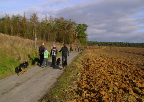 Ač nastudováno, Byšicemi prosvištím aniž bych poznala na mapě tak jasnou odbočku a otáčím se až v blízkých Liblicích. Místo srazu objevím více méně náhodou, ještě že je tu další auto s choďáckou samolepkou :) Výletníky tentokrát možná odradila avízovaná délka 14-18 km, protože se nás nesešlo tolik, po desáté tedy my odvážní vyrážíme na 14-ti kilometrový okruh rovinkami v okolí Hostína. Psisko mě nadšeně vláčí, když po asi 400 metrech začne zmateně hledat páníčka, který s námi ale vůbec nejel. Chápu, zvyk je zvyk a často býváme celá smečka, ale že nepochytí, že jsme už téměř dvě hodiny jen sami dva :?