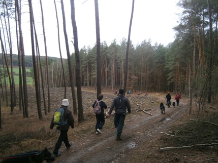 Ač nastudováno, Byšicemi prosvištím aniž bych poznala na mapě tak jasnou odbočku a otáčím se až v blízkých Liblicích. Místo srazu objevím více méně náhodou, ještě že je tu další auto s choďáckou samolepkou :) Výletníky tentokrát možná odradila avízovaná délka 14-18 km, protože se nás nesešlo tolik, po desáté tedy my odvážní vyrážíme na 14-ti kilometrový okruh rovinkami v okolí Hostína. Psisko mě nadšeně vláčí, když po asi 400 metrech začne zmateně hledat páníčka, který s námi ale vůbec nejel. Chápu, zvyk je zvyk a často býváme celá smečka, ale že nepochytí, že jsme už téměř dvě hodiny jen sami dva :?